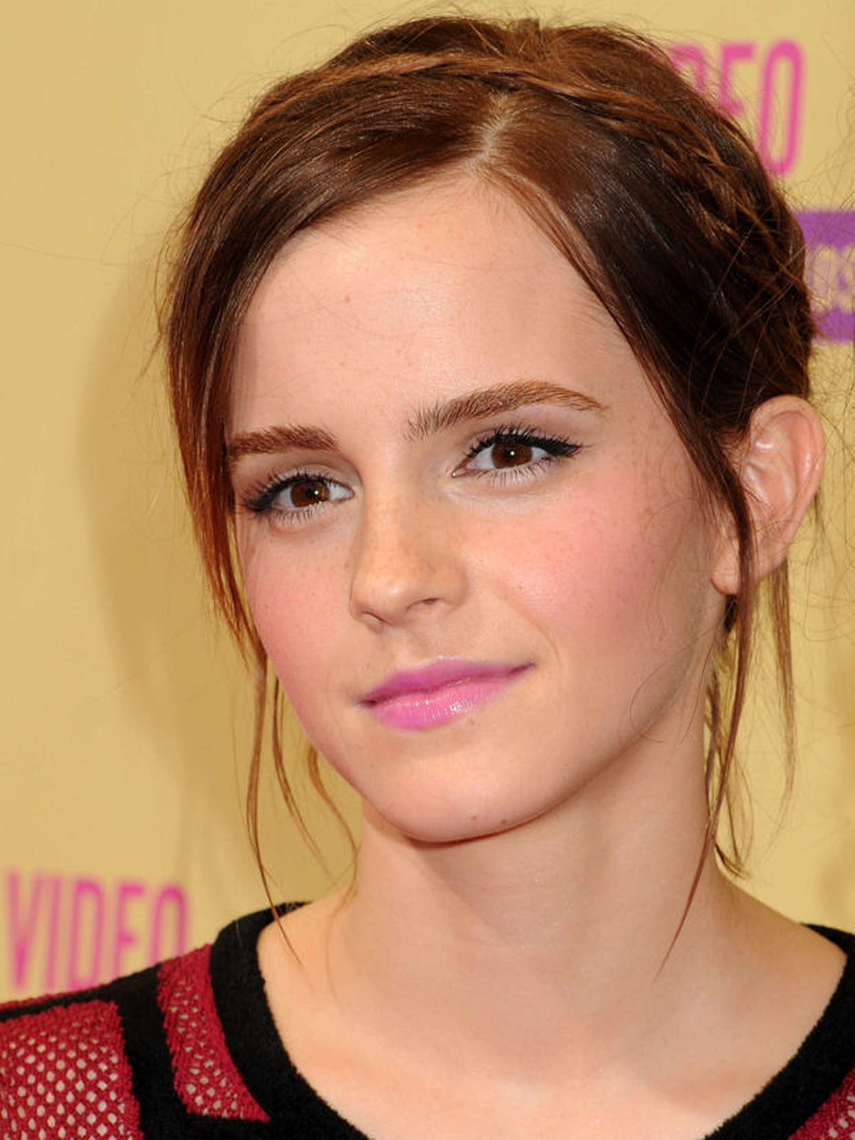 Emma Watson, sage avec son chignon bohème et sa bouche rose