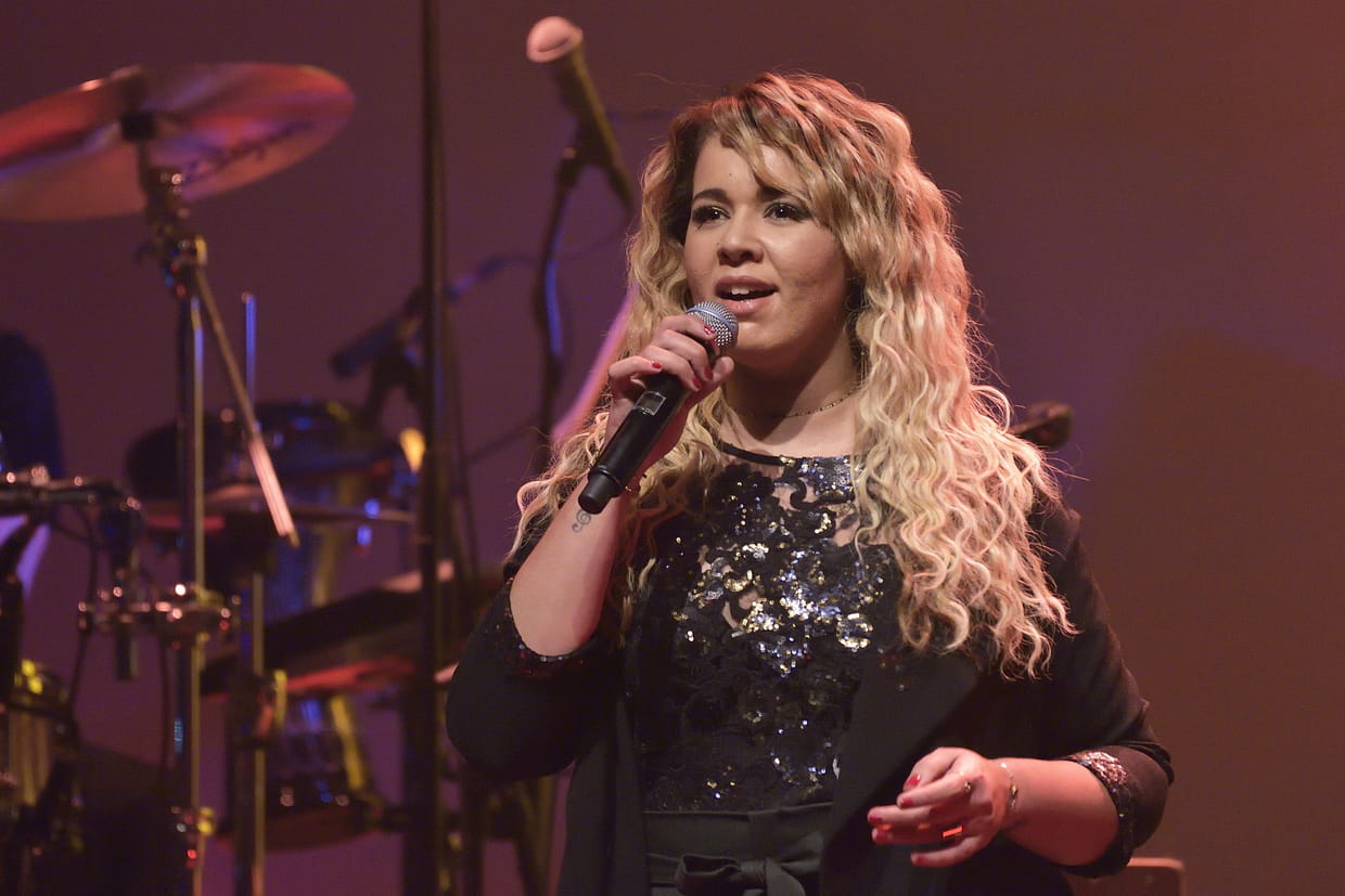 Chimène Badi, surprenante avec ses cheveux longs blonds et ondulés