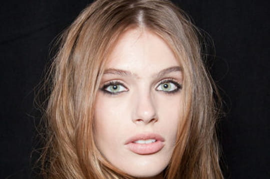 Le regard gagne en profondeur avec une ombre à paupières beige neutre renforcé par un crayon khôl noir. Sans oublier l'indispensable mascara. Noir, évidemment. La bouche s'efface sans pour autant disparaître sous le voile d'un rouge à lèvres rose tendre.