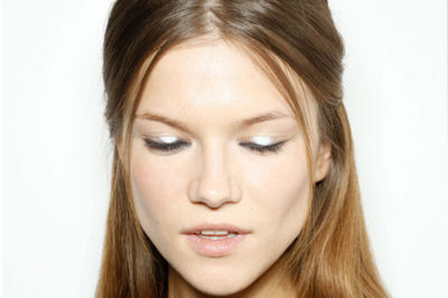 Emilio Pucci a habillé ses mannequins d'un maquillage délicat. Mais il n'a pas cédé à la tentation du nude look pour autant. Le teint est unifié et transparent. Le blush rose appliqué sur les pommettes assure un effet bonne mine. Le regard est souligné par un trait d'eye-liner tracé au ras des cils supérieurs et à l'intérieur de l'œil. Cet œil-de-biche d'adolescente s'illumine grâce à une touche argenté posé au centre de la paupière mobile. Un peu de mascara et un coup de rouge à lèvres rose finissent ce look frais et juvénile.