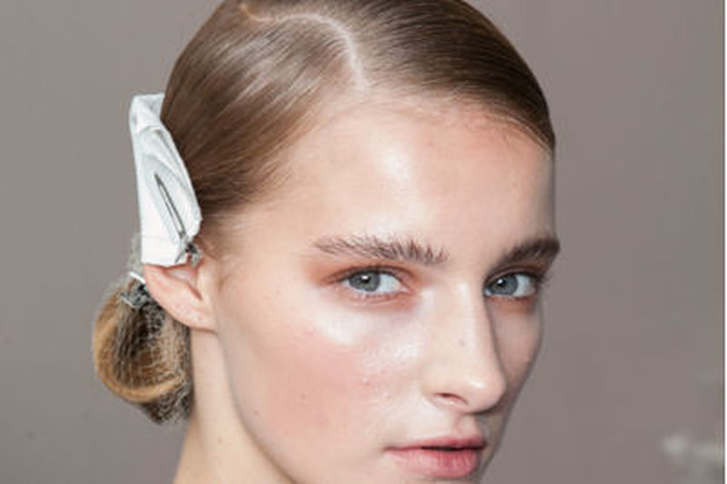 Le bon réflexe chic : harmoniser les couleurs de sa tenue à celles du maquillage, sans succomber à la tentation du ton-sur-ton pour autant. Chez Carven, le teint est clair et les joues sont réchauffées par un blush. Les yeux se parent d'un smoky dans les tons chauds. On le réalise en appliquant un fard marron-orangé sur la paupière mobile et au ras des cils inférieurs. Il ne reste qu'à voiler la bouche d'un rouge à lèvres rose légèrement glossy. La femme Carven est prête à partir pour une nouvelle destination.