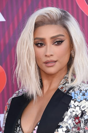 Changement de tête radical pour Shay Michell en 2019 à la cérémonie des iHeart Radio Music Awards : elle tente le blond platine, grâce à une perruque convaincante.