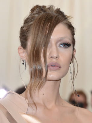Teint et bouche nude et yeux de chat à tomber, Gigi Hadid a ébloui le tapis rouge du Met Ball. Le top a opté pour un chignon aux allures grunge qui s'accordait à sa robe asymétrique.