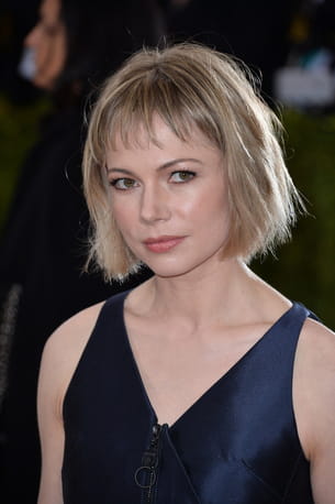 Avec cette frange courte, Michelle Williams apporte une touche punk au carré court qu'elle arborait lors du Met Gala en 2016.