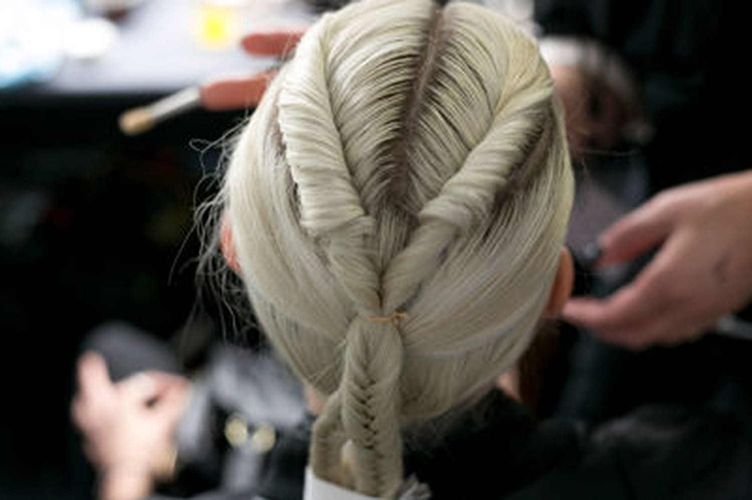 Sur ce défilé, cette dernière est toutefois plus élaborée que celle de notre chère Angelina. Du sommet au creux de la nuque, chaque partie est travaillée pour rester fixe. Un travail minutieux composé de torsades et tresses en épi qui permet d'obtenir une coiffure structurée. Le résultat est étonnant et pourtant, pas si compliqué à réaliser. Une fois l'œuvre terminée, place aux produits fixateurs : laque et spray gloss.