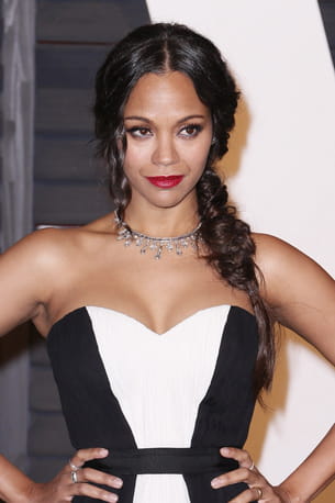 Une grosse tresse faussement décoifée s'avère être une coiffure de soirée parfaite. La preuve avec l'actrice Zoe Saldana.