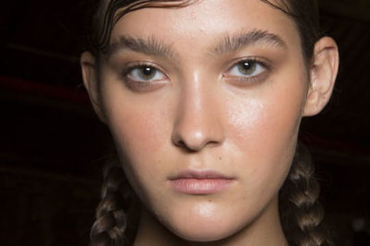 La femme DKNY n'a pas besoin de faire d'effort pour avoir de l'allure. Son look beauté choisi pour l'été prochain, prône un maquillage nude avec un teint légèrement glowy qui lui donne plus d'éclat. Quant à la coiffure, elle ne se veut pas ostentatoire. Elle reprend les basiques comme la queue-de-cheval, le chignon et les tresses, travaillés dans un style plus contemporain. Les détails sont pointus et s'amusent avec les tendances de la saison. Le rendu est détonant, raie en zig-zag pour le côté graphique, un front bien dégagé pour un esprit chic ou encore un effet mouillé qui sent bon le sable chaud et s'inspire du fameux effet glossy de la saison passée. Mais le détail qui tue, c'est la mèche-frange dégarnie de manière subtile. Ondulée ou frisée, elle présente un aspect cranté. Étrange, cette "non-mèche", à l'apparence faussement négligée, s'associe à une coiffure impeccable. En somme, il faut être coiffée mais pas trop. Pratique si l'on veut enchaîner une matinée à la plage avec une après-midi au bureau. En toute discrétion, bien entendu.