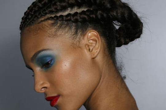 Un dernier show, pour 38 ans de service, le prêt-à-porter et l'enfant terrible finalement se séparent. Fana des émissions télés et des séries populaires depuis sa tendre enfance, elles n'ont jamais cessé d'inspirer ses collections. Pour son dernier défilé printemps-été 2015, ses silhouettes étaient toutes réunies autour d'un spectacle en clin d'œil aux miss. Ces femmes sont élues pour leur beauté, un choix qui fait écho au dernier salut de l'artiste et au style singulier auquel il tient. Cet esprit rebelle, à contre-courant de la mode, apporte son ultime vision de l'esthétique féminine. Comme à son habitude, l'extravagance se mêle à l'ethnique et au populaire. Un melting-pot d'influences qui ont fait sa marque de fabrique. Coiffure afro de forme conique, elle regroupe des tresses vers l'arrière, ramené en un chignon comme suspendu dans l'air. Les yeux sont maquillés par un fard bleu irisé sur la paupière, qui tire vers le turquoise sur leur contour. Une couleur pas sans effet, elle définit le regard façon rétro 80. Quant à la bouche, elle s'habille d'un rouge passion délicatement laqué. Sexy, glamour, deux notions indispensables selon Jean Paul Gaultier qui s"amuse à faire des va-et-vient entre le chic et l'excentricité, avec beaucoup de second degré. Encore, un maquillage et une coiffure en parfaite contradiction avec la tendance, décidément, il aura imposé jusqu'au bout son regard sur la mode.