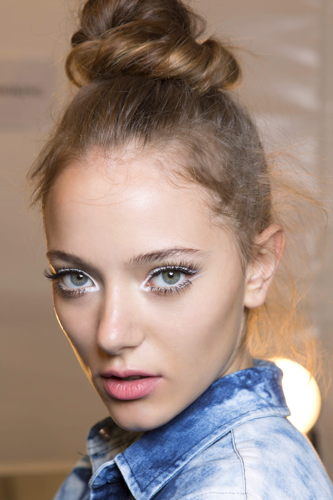 Un petit chignon haut perché tout en délicatesse. Noué langoureusement et laissant s'échapper quelques mèches rebelles de cheveux, ce bun irrésistible joue la romance.