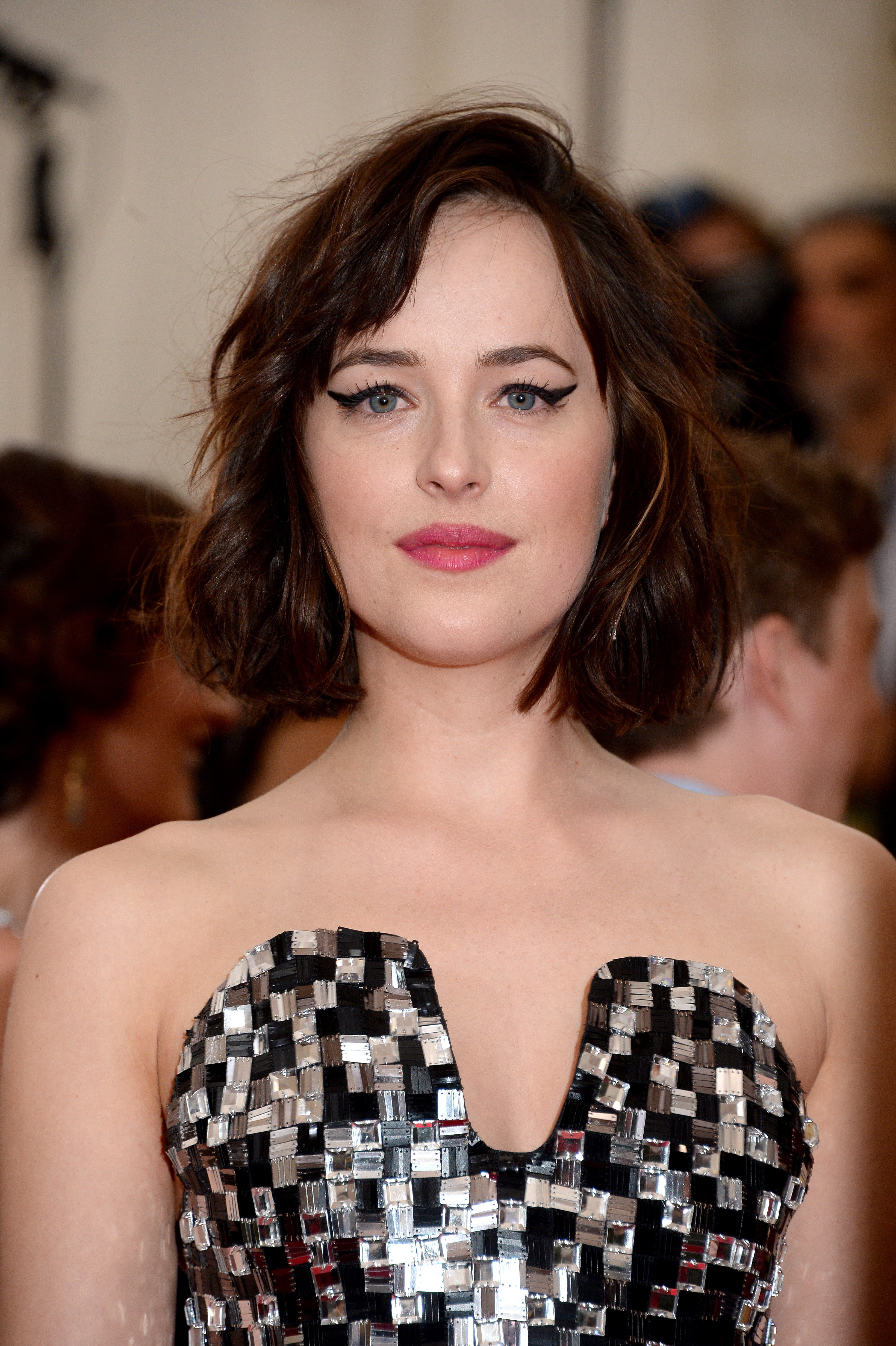 Dakota a récemment craqué pour une coupe au carré qu'elle modernise par un coiffage à l'effet subtilement décoiffé pour l'occasion. Une coiffure sobre qui lui va mieux que son trait d'eyeliner noir un peu trop épais.