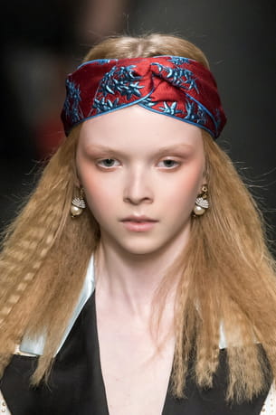 C'est l'accessoire de cheveux indispensable de cette saison. Le turban transforme une coiffure en un rien de temps. Chez Gucci, on aime l'association avec les longueurs gaufrées. A tester de toute urgence.