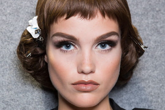 Comme toujours, le défilé Moschino nous en met plein les yeux ! Les tops deviennent des poupées en papier et déambulent sur le catwalk avec des tenues sexy et rétro. Les accessoires font partie intégrante de la collection : colliers de perles, sacs à main, ceintures... Jérémy Scott nous fait plaisir ! La mise en beauté est elle aussi très riche. Le printemps-été 2017 remet au goût du jour la frange courte et le rouge à lèvres marron. La coupe se porte au carré avec quelques boucles glamour au niveau des oreilles. La frange s'arrête au milieu du front, elle est effilée et se porte comme dans les années 1950. Côté make-up, le regard se fait sophistiqué. Sur la paupière, le maquilleur applique un fard beige au fini mat. Il souligne l'oeil avec un trait fin d'eyeliner qui se termine en une virgule vers les tempes. Le crayon chair s'utilise dans la muqueuse pour éveiller les mirettes. Les faux-cils deviennent un indispensable de la saison estivale pour afficher un regard dramatique. Les sourcils apportent également un maximum de caractère puisqu'ils se révèlent épais et à peine épilés. Pour finir, on ressort de notre tiroir le rouge à lèvres marron semi-mat qui fait son come-back en 2017.