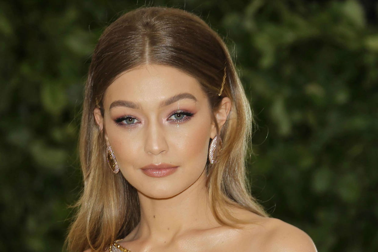 Gigi Hadid avec un duo de fines barrettes dorées