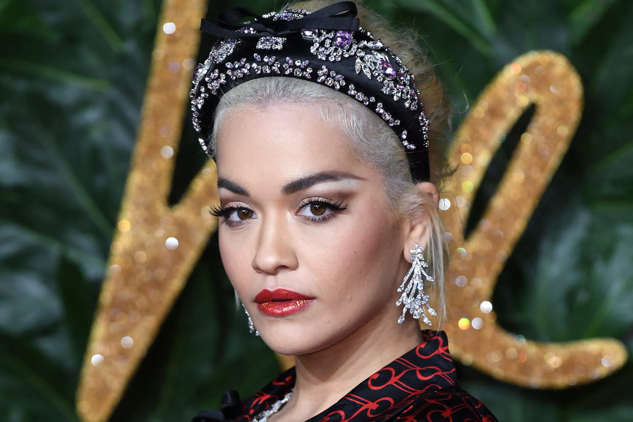 Rita Ora avec un serre-tête noir à cristaux
