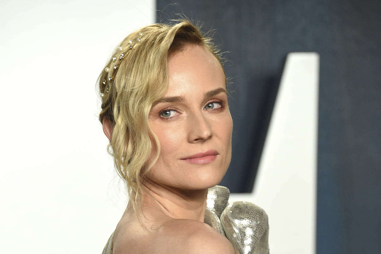 Diane Kruger avec un double serre-tête à perles et bijoux
