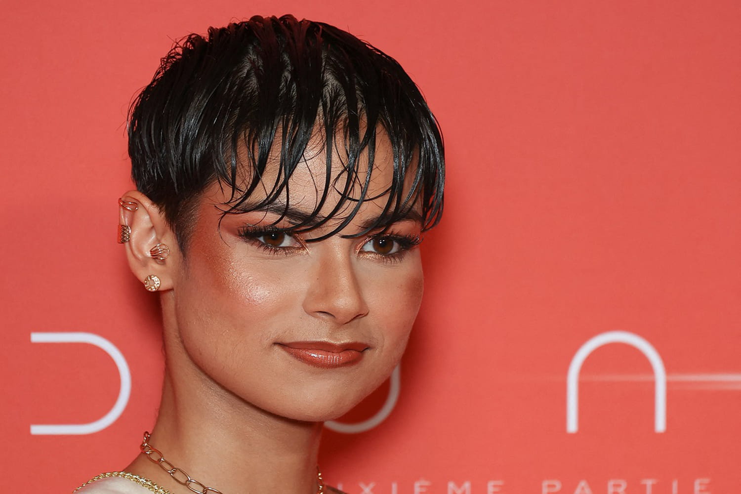 Eve Gilles est une reine de beauté qui n'hésite pas à tenter des looks beauté audacieux, avec un maquillage vert ou encore un wet hair. Celle qui est la première gagnante avec les cheveux courts du concours Miss France sait comment magnifier sa coupe androgyne. Pour ce faire, elle mise tout sur le brushing. Son but capillaire : avoir un beau volume. Alors qu'il est essentiel mettre la tête en bas lors du séchage des cheveux longs pour obtenir du volume, Eve Gilles a une autre astuce, plus adaptée à sa longueur capillaire. "Je les sèche en mettant tous les cheveux vers l'arrière", a-t-elle expliqué. Cette technique permet de décoller les racines, évitant ainsi l'effet raplapla. Quant à sa large mèche à l'avant, Miss France 2024 se munit d'une brosse ronde pour la coiffer "comme une frange", a-t-elle précisé. Pour les moins expertes, la brune conseille aussi de travailler "la mèche de devant sinon à la main" pour un effet plus naturel.