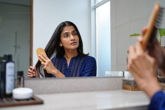 Les Indiennes sont reconnues pour la beauté de leur chevelure. Longs, très épais et brillants, leurs cheveux ont de quoi faire rêver, et elles le doivent en partie à un rituel ancestral originaire de la médecine ayurvédique. Son nom ? Le hair oiling. Il consiste à masser le cuir chevelu et à enduire les longueurs de cheveux avec une huile végétale, puis à laisser poser le soin avant de le rincer. Depuis plusieurs mois, cette tradition connait un véritable regain de popularité auprès de la jeune génération, notamment grâce aux réseaux sociaux. Sur TikTok, de nombreuses adolescentes indiennes se filment en train de pratiquer le hair oiling, parfois à l'aide de leur mère. Preuve de l'ampleur du phénomène, sur la plateforme, le hashtag #hairoiling regroupe plus de 120 000 vidéos et cumule plus de 700 millions de vues.