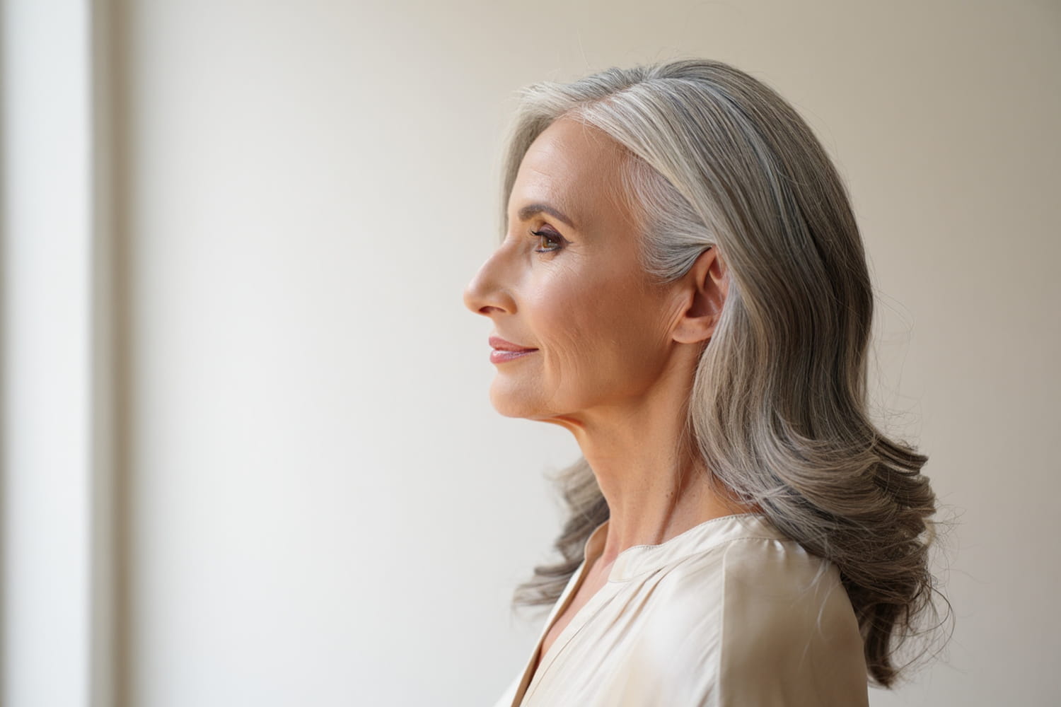 Comme la technique utilisée est très similaire à celle d’un balayage, la repousse n’est pas un problème. Le grey blending ne demande que très peu d’entretien : on peut laisser évoluer la couleur au fil des semaines ou retourner au salon pour la rafraîchir. Cela explique aussi le succès de cette tendance : sans coloration uniforme, plus besoin de retourner chez le coiffeur régulièrement. Une contrainte en moins, et une chevelure plus lumineuse que jamais.