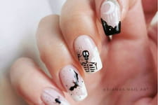 Le nail art noir est également à votre portée, du plus simple avec par exemple de simples lignes argentées ou dorées sur un ou plusieurs ongles noirs, un cœur noir sur une base claire, ou même un simple point noir pour un minimalisme ludique, au plus complexe avec des motifs noirs et blancs par exemple, que vous pourrez réaliser avec des pochoirs pour plus de facilité.