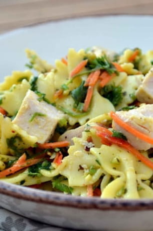 Salade de pâtes au poulet, vinaigrette moutarde et curry