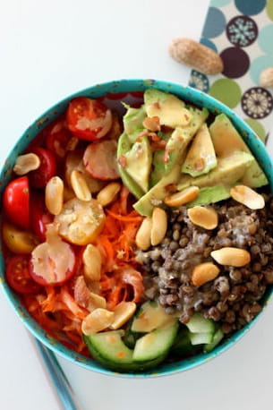 Salade végétarienne aux lentilles et avocat