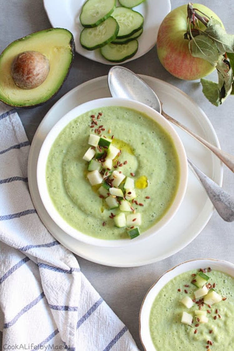 Soupe froide concombre, avocat et pomme