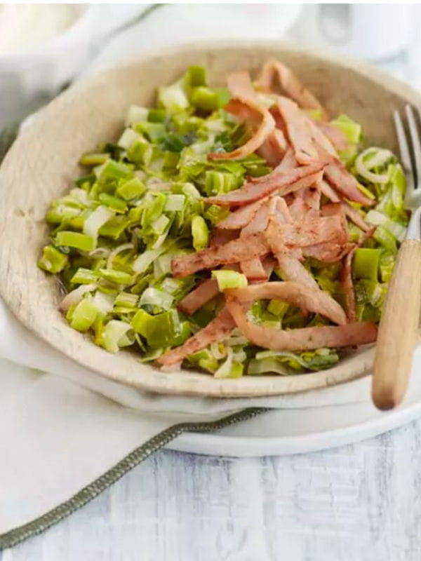 Fondue de poireaux, saveur chèvre, ail et oignons