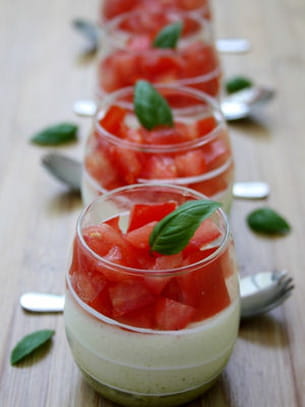 Verrines italiennes au pesto, mousse de mozzarella et tomates