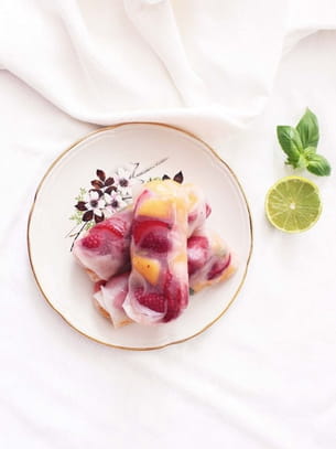 Rouleaux de printemps au melon, fraises et basilic