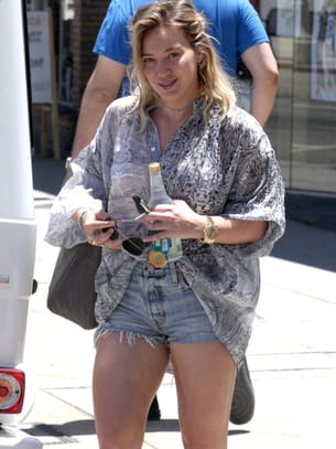 Après sa grossesse, Hilary Duff peine à perdre ses petits kilos en trop mais ça ne l'empêche pas (et elle a bien raison !) de déambuler dans les rues de Los Angeles, en mini short en jean.