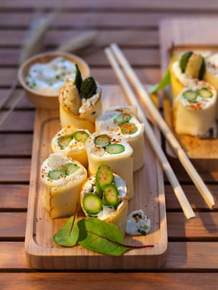 Bouchées d'asperges, piment d'Espelette et Fol Epi
