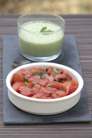 Tartare de tomate coeur de boeuf, pastèque et câpres