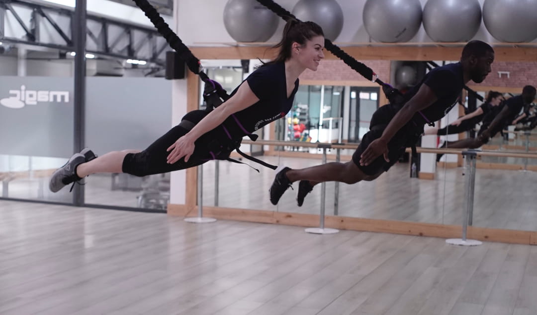 Depuis quelques mois, la salle Magic Forme (Paris 14) nous propose de prendre notre envol de façon musclée grâce au bungee fitness. Harnachée et attachée à un élastique accroché au plafond, on enchaîne les exercices de fitness : pompes, burpees, squat, fentes, course sur place... Pendant 40 mn environ (la session dure une heure, installation comprise) on s'exerce à décoller, virevolter, tournoyer. Quelle exaltation de s'entraîner avec cette sensation de voler ! On s'amuse beaucoup et bosse son cardio sans vraiment s'en rendre compte. Un cours original à tester sans tarder.
