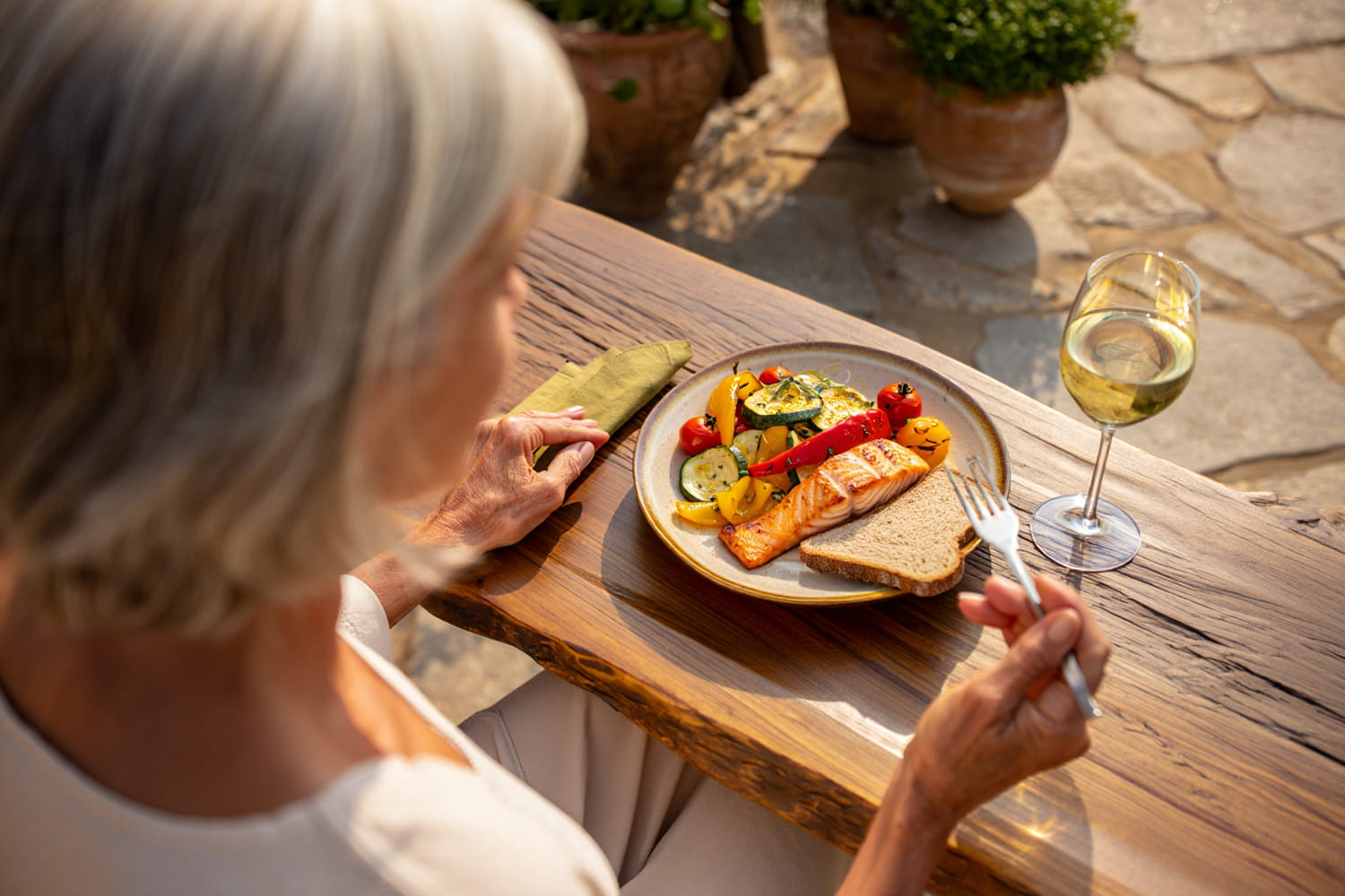 Le deuxième changement d’Ilene Block se trouve évidemment au niveau de la nourriture. "Je mangeais comme une femme de 25 ans avec un métabolisme de 61 ans", explique-t-elle. "Vos besoins en énergie changent. Je continuais à manger les mêmes portions que lorsque je travaillais 70 heures par semaine et que je compensais le stress par le sucre." A la ménopause, un apport en protéines suffisant devient crucial pour maintenir une bonne masse musculaire. Mais ce n’est pas tout : au lieu de passer son temps à deviner quels aliments sont vraiment sains et lesquels sont de faux amis, elle suit une liste spécifique d’ingrédients, conçue tout spécialement pour les femmes de plus de 60 ans qui souhaitent perdre de la graisse.