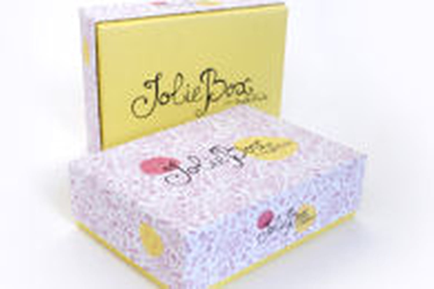 Pour ne pas vous laisser sur votre faim, découvrez la JolieBox vue par Mzelle Fraise. Jaune, rose et pétillante à souhait. Une boîte réutilisable en objet déco. Mais vous pouvez aussi recevoir une boîte dessinée par un autre artiste. Le suspense reste complet jusqu'à réception de votre JolieBox.