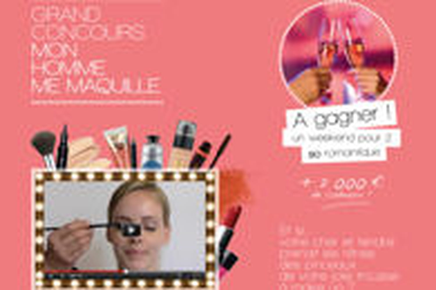 JolieBox vous invite à participer à un jeu concours très original. Intitulé "Mon homme me maquille", le principe est simple. Postez une vidéo de 3 à 6 minutes dans laquelle votre moitié s'occupe de votre make-up. Le couple gagnant remportera un week-end pour deux des plus romantiques. Les neuf autres meilleures prestations se partageront près de 2 000 euros de gain.
