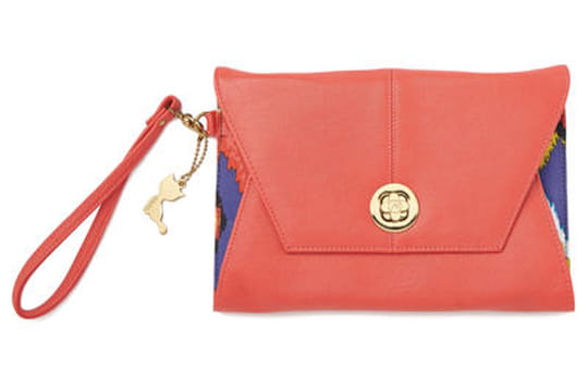Lollipops, fondé en 1999 est surtout connu pour ses créations de sacs chics et fantaisistes. Accessible dans cent points de vente, la marque sait allier l'art de l'originalité à celui de la féminité. Cette pochette colorée en est la preuve. On craque pour son coloris pepsy et uni sur le devant et son fermoir doré, simple et chic. Les motifs bariolés sur le côté apportent une touche d'excentricité qui fait de ce sac un vrai it-accessoire. Et enfin le détail qui a son charme : le petit pendentif couleur or, en forme de chat, accroché sur le côté.