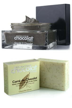 Granité chocolaté et carré de chocolat exfoliants par Sensation Chocolat