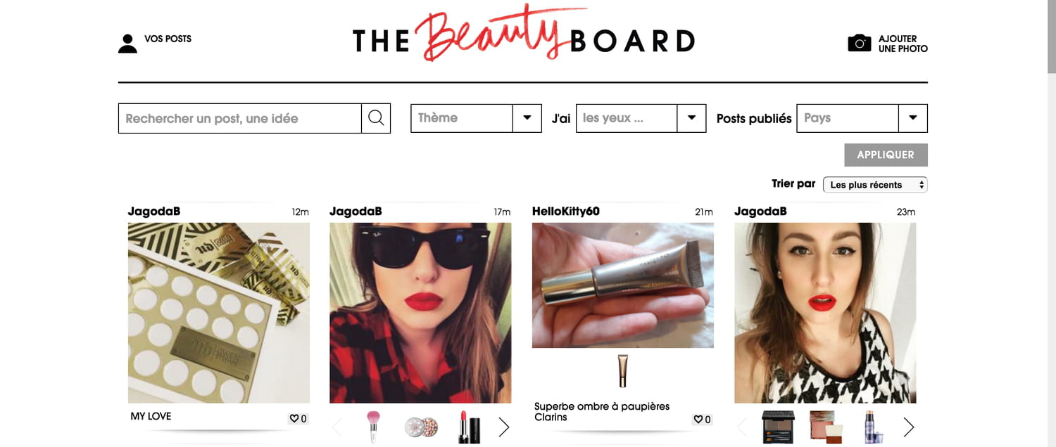Sephora se met à l'heure de la beauté connectée avec le lancement d'une toute nouvelle plateforme communautaire. Baptisé The Beauty Board, ce site est complètement novateur dans l'univers des cosmétiques et compte bien métamorphoser votre expérience shopping. La marque a en effet imaginé un espace social à travers l'eshop de Sephora auquel vous pourrez participer à l'aide de votre compte actuel ou en créant un nouveau compte. Cette innovation permet à la communauté de partager ses looks maquillage en identifiant les produits utilisés afin que les beautystas puissent reproduire leurs make-up coups de cœur. A travers les photos postées, les clientes pourront obtenir conseils et techniques pour reproduire les mises en beauté qui les font craquer. "C'est notre 1er réseau social 100% beauté qui permet de découvrir tous nos produits sous l'angle de ceux qui les connaissent le mieux : nos clients !" a indiqué la Team The Beauty Board France. Vous pourrez donc créer votre propre page sociale en téléchargeant vos photos et en suivant d'autres utilisatrices. Pour rendre l'expérience facile et agréable, Sephora a pensé à tout ! La plateforme se compose de filtres en fonction des centres d'intérêt pour afficher les posts qui auront le plus de chance de vous séduire. Sous chaque photo publiée, vous pourrez y trouver tous les produits utilisés afin de pouvoir les acheter directement sur le site en ligne. Et pour toujours plus d'inspirations, vous pourrez suivre tous les maîtres de la beauté comme les blogueuses ou la Pro Team Sephora.