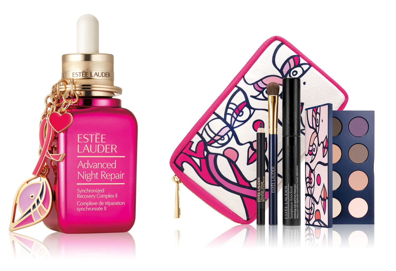 En 2017, la marque s'engage donc une nouvelle fois auprès de l'association "Le Cancer du Sein, Parlons-En !" à travers la collection Ruban Rose. Elle se compose de l'Advanced Night Repair Complexe de réparation synchronisée II et d'une trousse de maquillage avec tous les indispensables Estée Lauder. Pour l'occasion, le sérum culte se pare d'un packaging à tomber et d'un porte-clés rose super girly. La pochette quant à elle, contient une palette de 8 fards à paupières, un mascara, un mini-crayon noir et un pinceau pour appliquer l'ombre à paupières comme une pro. Pour soutenir cette cause généreuse, Estée Lauder reverse 10 % du prix des produits à l'association. Disponibles en édition limitée, vous trouverez ces must-have dans les points de vente Estée Lauder et sur www.esteelauder.fr à partir du 25 septembre 2017.