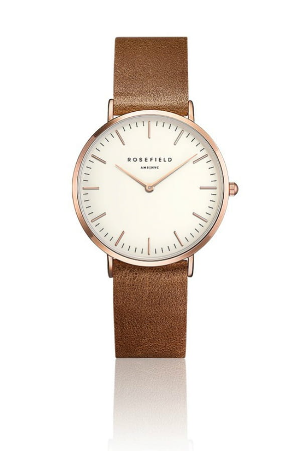 La montre "Tribeca White Brown Rose Gold" de Rosefield sur Ocarat