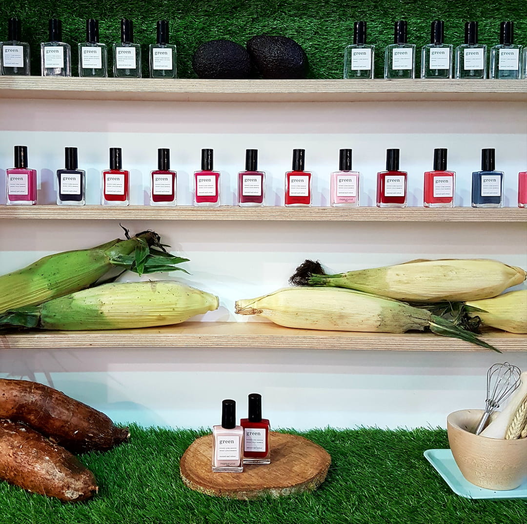 Si depuis sa création, Manucurist s'engage à concevoir des produits les plus éco-responsables possible, la marque innove aujourd'hui en proposant une formule composé jusqu'à 84 % d'ingrédients d'origine naturelle. Crée pour être le plus respectueux possible de la planète et de notre santé, le vernis Green est vegan, réalisé à base de manioc, canne à sucre, coton et pomme de terre. Il est aussi enrichi en huile de coco et extrait de bambou, pour leurs propriétés revitalisantes et fortifiantes. Pour s'assurer que chaque femme puisse trouver son bonheur, le vernis se décline en 15 teintes, du rose pâle au rouge foncé, et s'accompagne d'une base réparatrice et d'un top coat protecteur, Très pigmentés, ils tiennent (presque) aussi longtemps qu'un vernis classique, environ 5 jours, et n'abîment pas les ongles. Pari réussi !