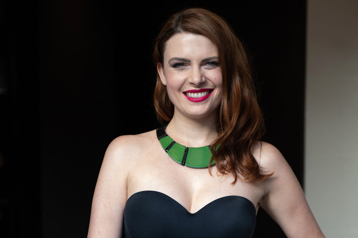 Top : Elodie Frégé et son rouge fuchsia