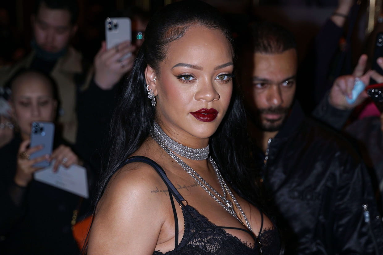 La bouche rouge sombre de Rihanna