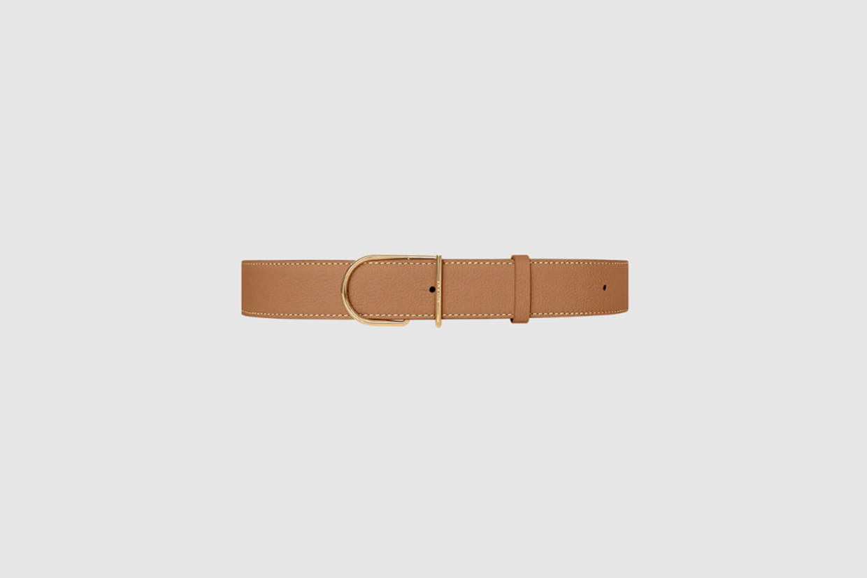Ceinture en cuir camel à surpiqûres blanches de Polène