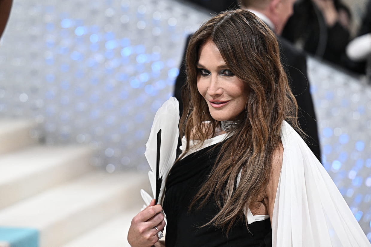 Carla Bruni, incandescante avec son coin interne bleu métallique
