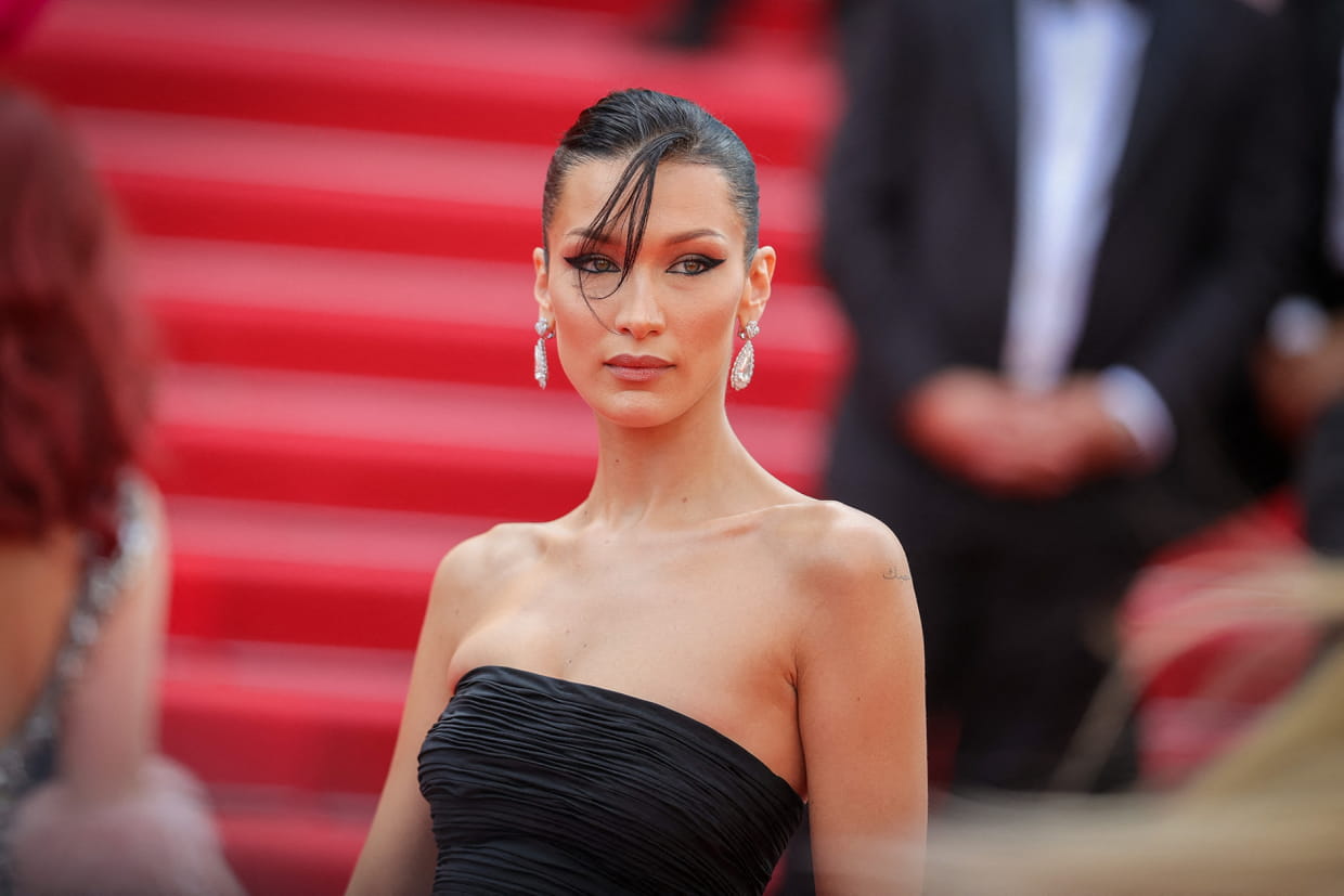 Bella Hadid, sophistiquée avec son cat-eye noir d'ivoire