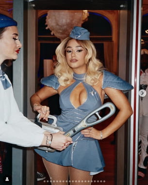 Blonde décolorée, Léna Situations s'est métamorphosée en hôtesse de l'air sexy