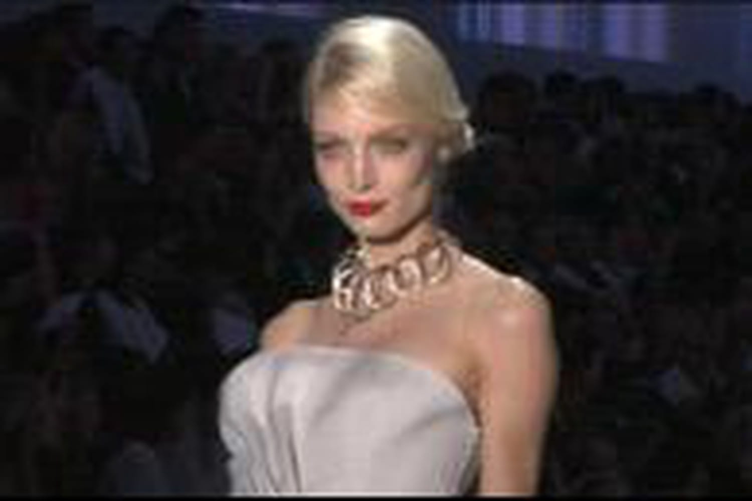 Pat Mcgrath a réalisé un maquillage que pourrait porter, sans aucun souci, une femme ordinaire sur le point de se rendre à une soirée. Nous sommes bien loin de la tendance color block de la saison dernière.