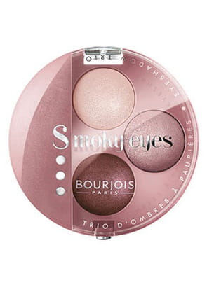 Trio Smoky Eyes « Life is Pink » de Bourjois Maquillez-vous avec subtilité grâce à ce nouveau fard à paupières aux différentes teintes de rose. Ce coloris illumine et agrandit le regard en légèreté pour un résultat harmonieux. L'astuce : appliquez la teinte la plus claire sur l'ensemble de la paupière mobile à laquelle vous ajoutez la teinte moyenne en dégradé et terminez par la plus foncée dans le pli de la paupière pour un effet lumineux.